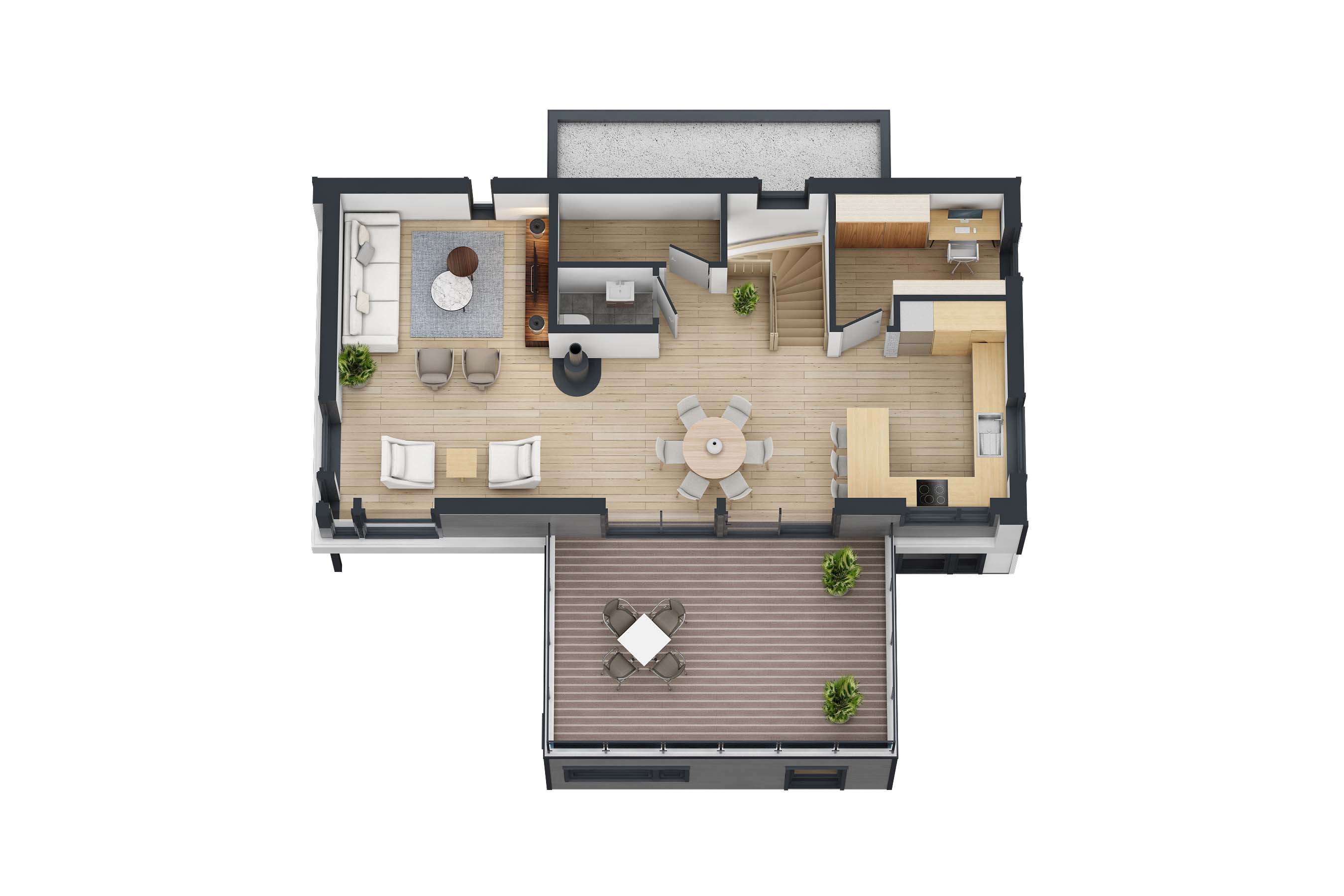 – Knausen har et moderne fasadeuttrykk med kombinasjon av materialer. Fra den integrerte carporten kan man gå rett inn i boligen.