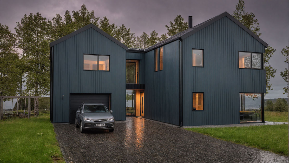 Istind er en tidløs bolig med et stramt og karakteristisk formspråk. Boligen består av to bygningskropper som er koblet sammen over bakkeplan. Dette gir overbygd og skjermet adkomst til bolig og garasje.