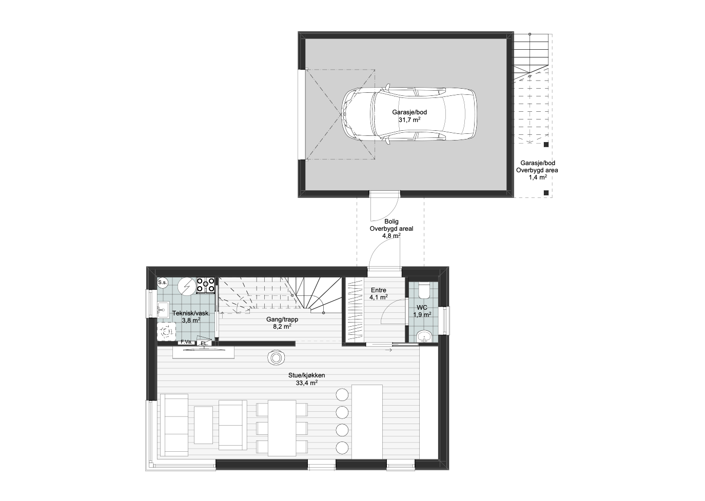 Det unike ved Istind er at andre etasje er koblet sammen med arealet over garasjen, som gir fleksible muligheter. Boligrommet over garasjen kan enten brukes som en privat sone for ungdom eller gjester, eller som en separat utleieenhet med egen inngang. Her finner man et eget oppholdsrom, et ekstra bad og et soverom