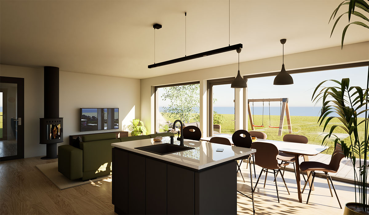 Resultatet er en lys, funksjonell og tiltalende bolig som glir naturlig inn i ulike omgivelser.