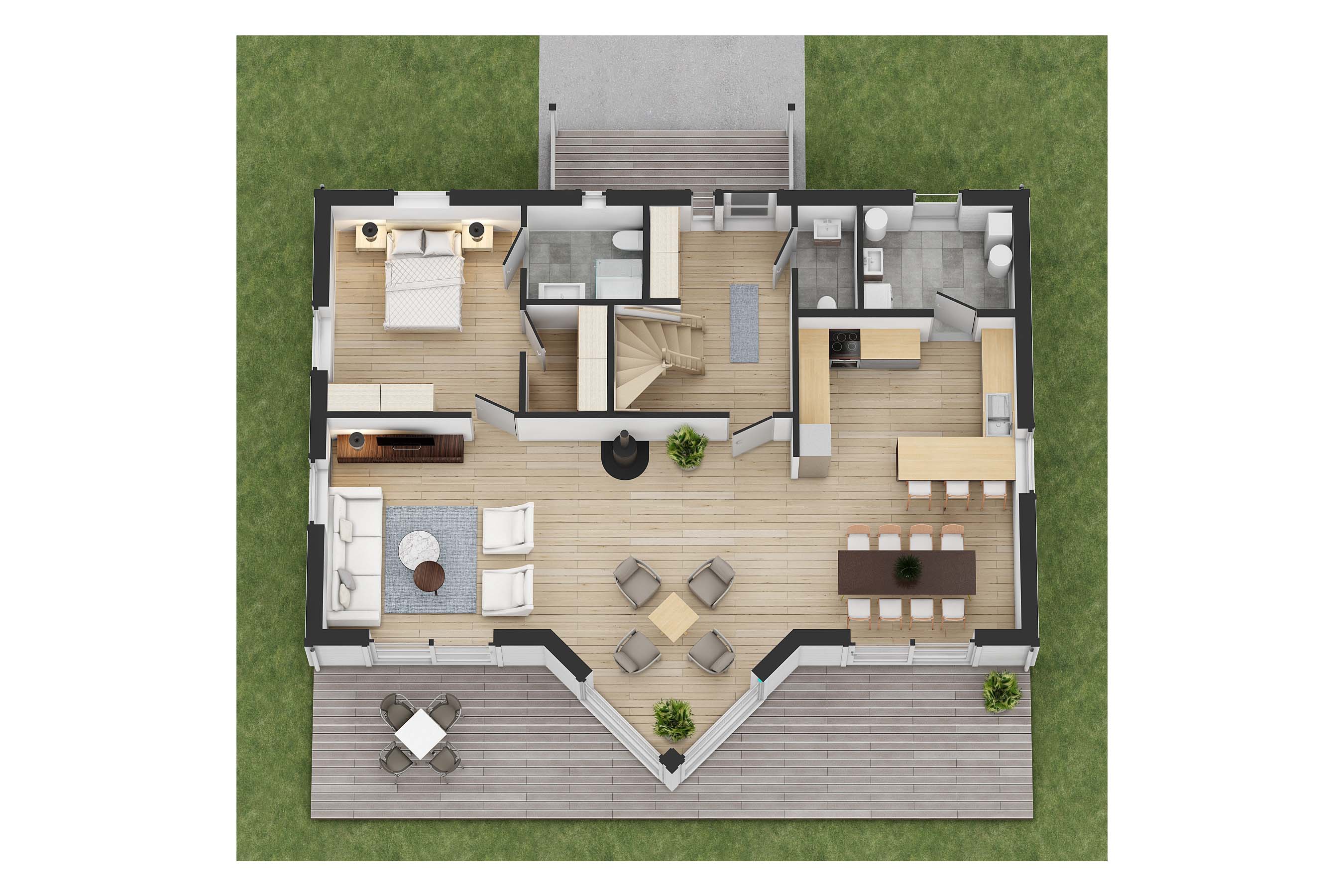 - Høgstolen er en innholdsrik bolig med et lyst og luftig uttrykk. Det markerte midtpartiet skaper en spennende bolig som skiller seg ut i nabolaget.
